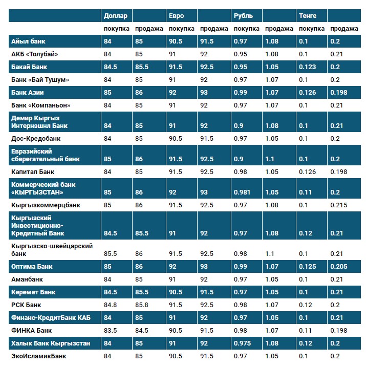 Курс доллара в коммерческих банках Кыргызстана на 20 апреля