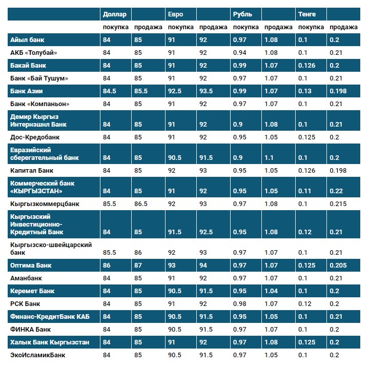 Курс доллара в коммерческих банках Кыргызстана на 21 апреля