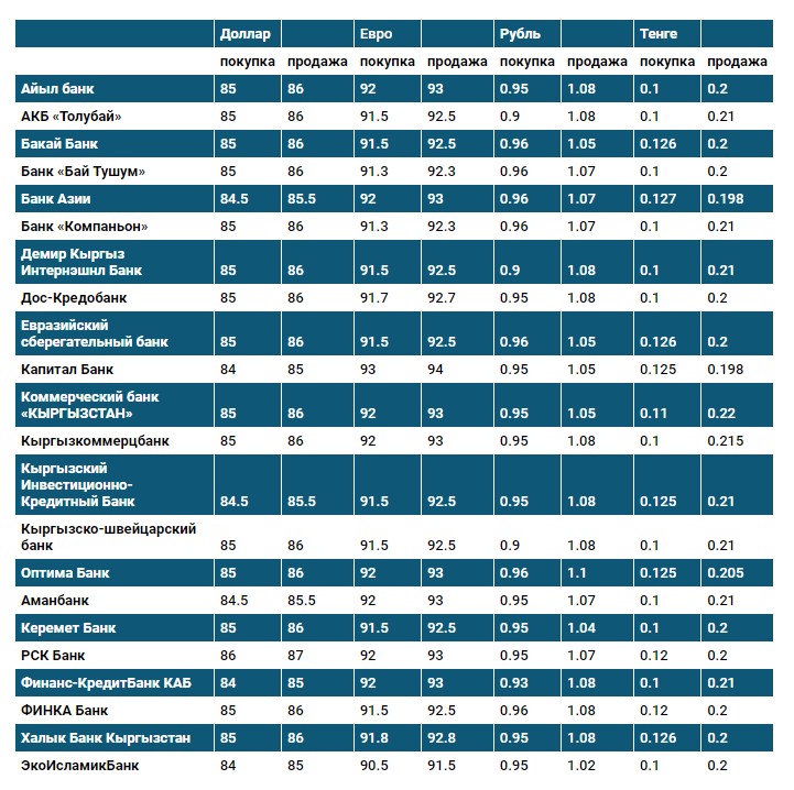 Курс доллара в коммерческих банках Кыргызстана на 25 апреля