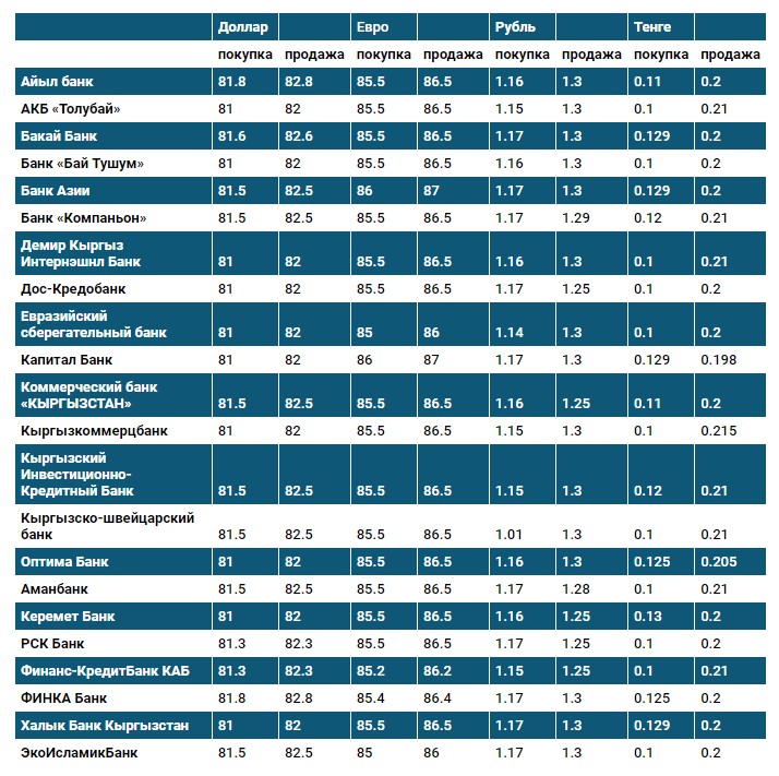 Курс доллара в коммерческих банках Кыргызстана на 19 мая