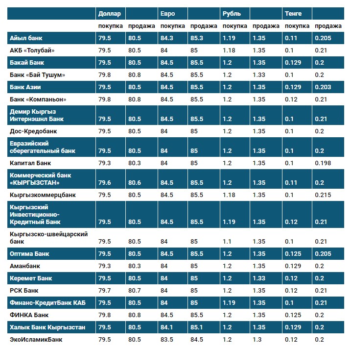 Курс доллара в коммерческих банках Кыргызстана на 23 мая