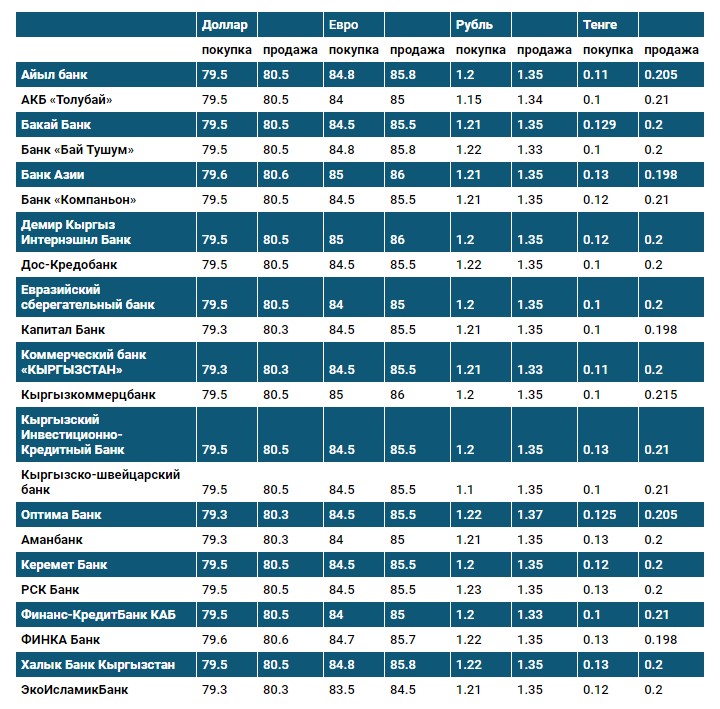Курс доллара в коммерческих банках Кыргызстана на 24 мая