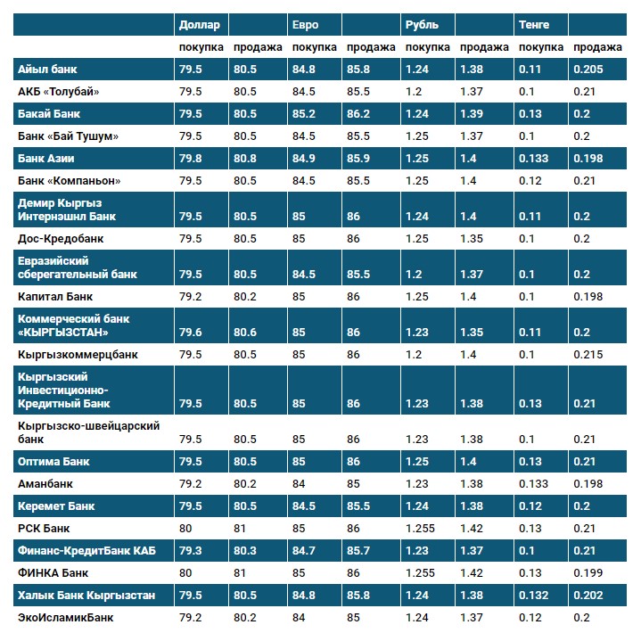 Курс доллара в коммерческих банках Кыргызстана на 25 мая