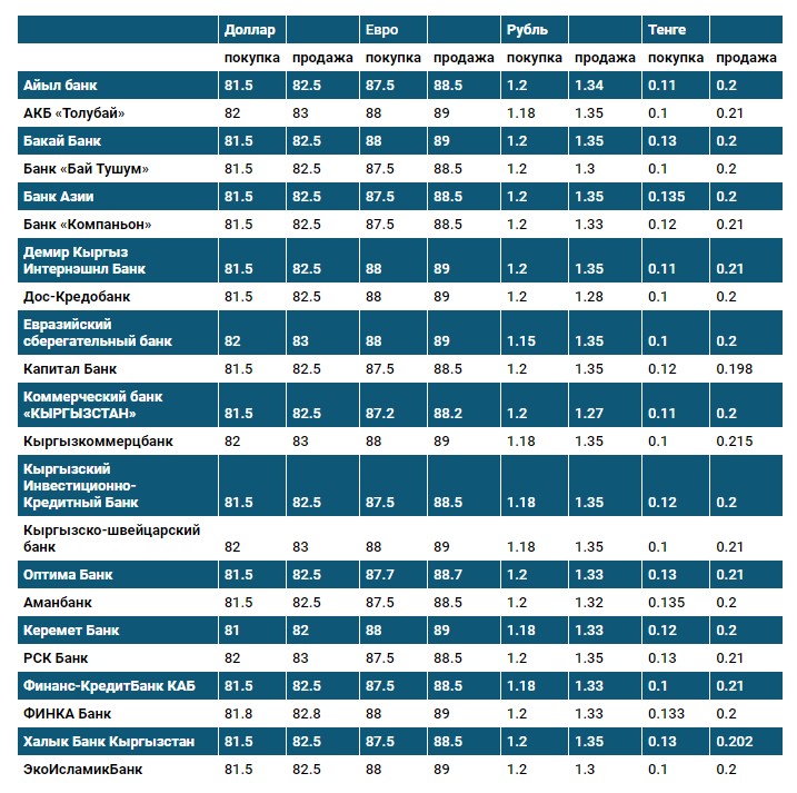 Курс доллара в коммерческих банках Кыргызстана на 31 мая