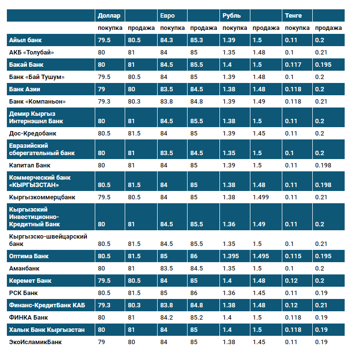Курс доллара в коммерческих банках Кыргызстана на 27 июня