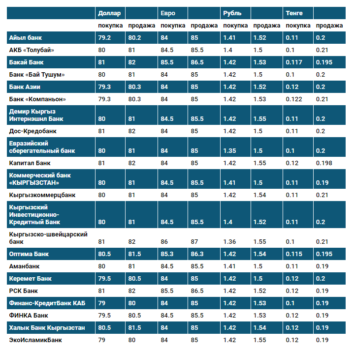 Курс доллара в коммерческих банках Кыргызстана на 29 июня