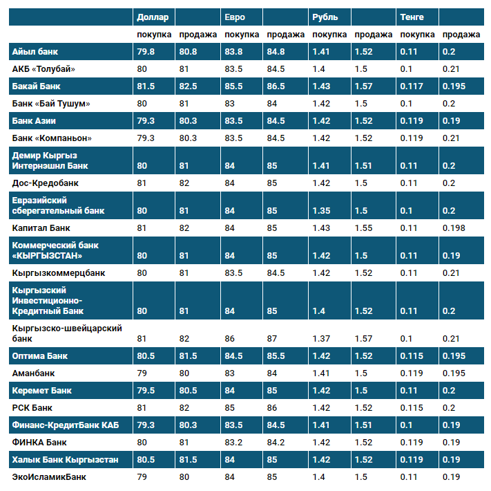 Курс доллара в коммерческих банках Кыргызстана на 30 июня