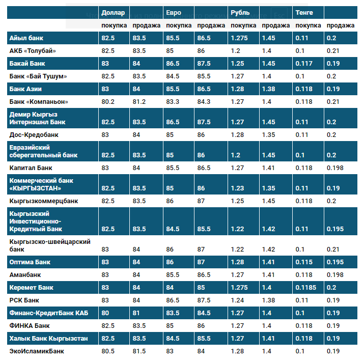 Курс доллара в коммерческих банках Кыргызстана на 6 июля