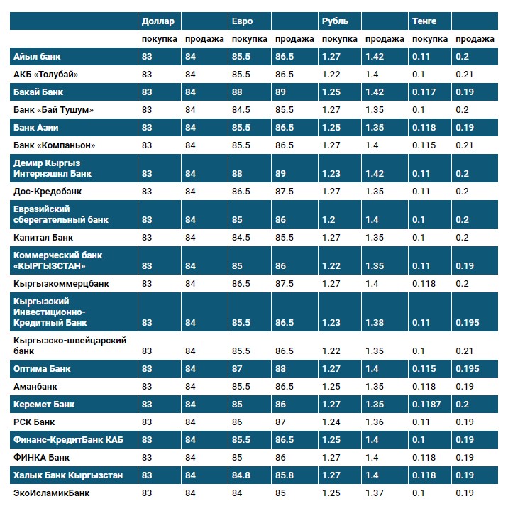 Курс доллара в коммерческих банках Кыргызстана на 7 июля