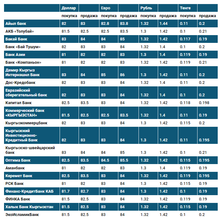 Курс доллара в коммерческих банках Кыргызстана на 14 июля