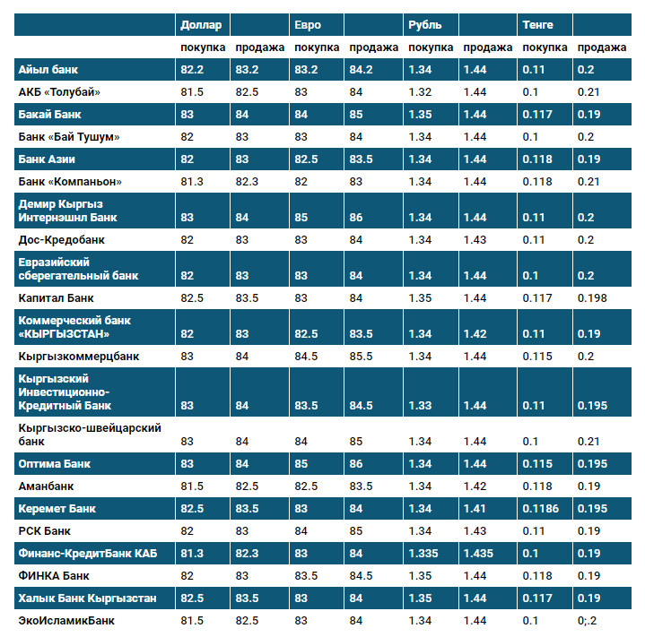 Курс доллара в коммерческих банках Кыргызстана на 15 июля