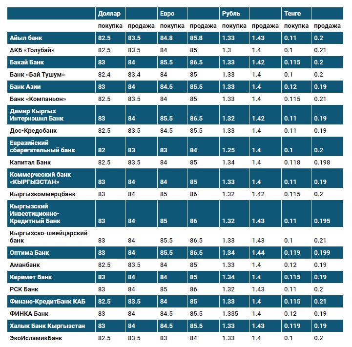 Курс доллара в коммерческих банках Кыргызстана на 28 июля