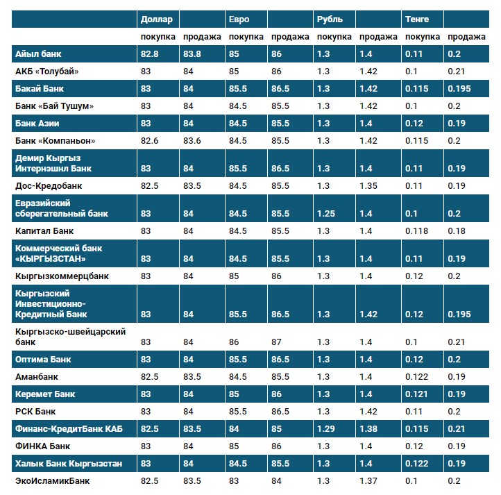 Курс доллара в коммерческих банках Кыргызстана на 1 августа