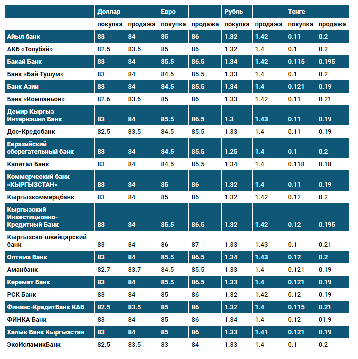 Курс доллара в коммерческих банках Кыргызстана на 3 августа