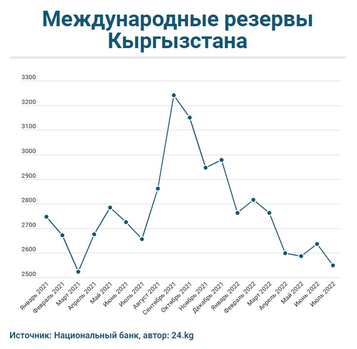 По итогам июля 2022-го валовые международные резервы Кыргызстана достигли $2 миллиардов 548,48 миллиона. Об этом сообщил сайт Национального банка.