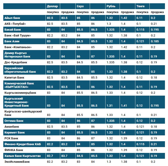 Курс доллара в коммерческих банках Кыргызстана на 10 августа