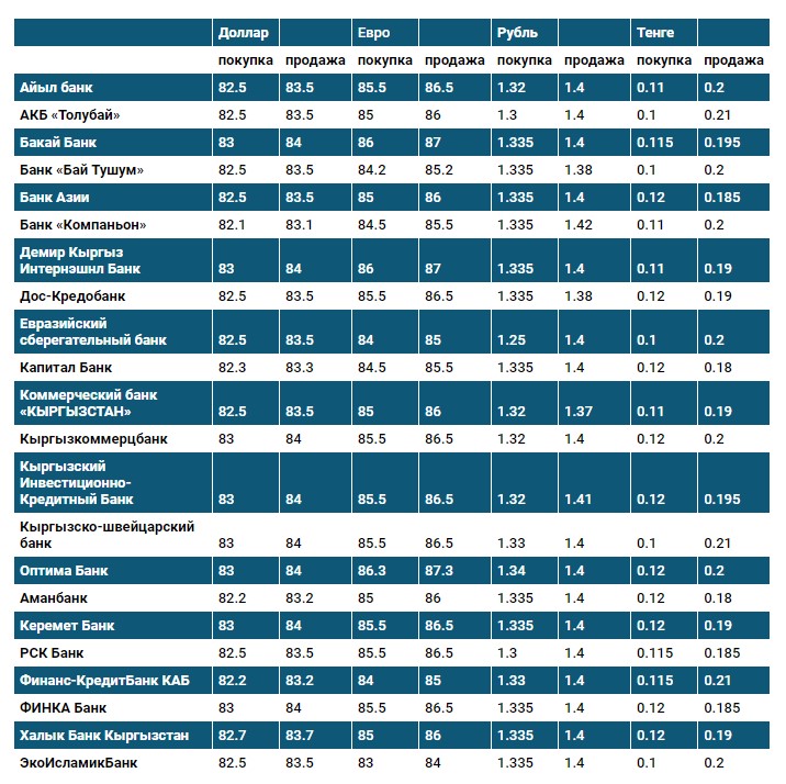 Курс доллара в коммерческих банках Кыргызстана на 11 августа