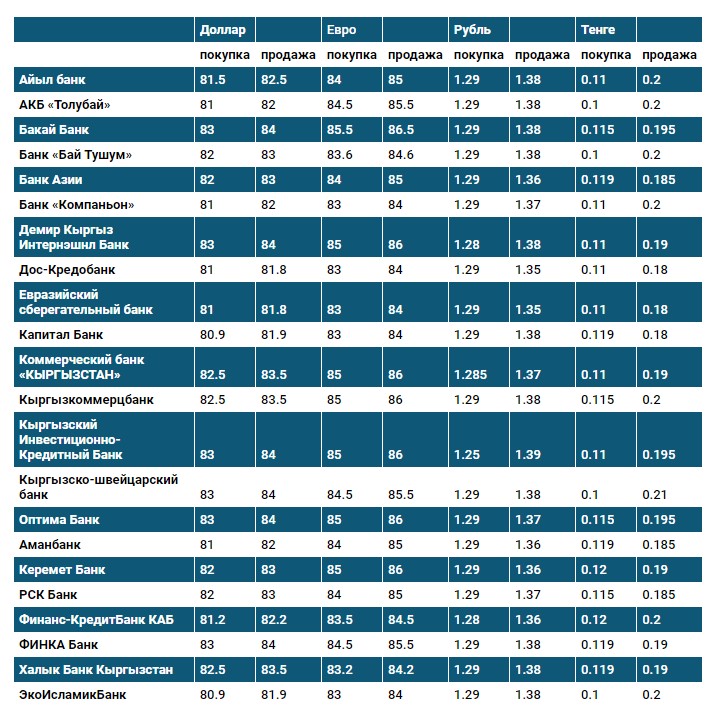 Курс доллара в коммерческих банках Кыргызстана на 17 августа