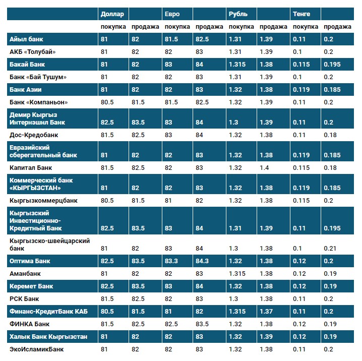 Курс доллара в коммерческих банках Кыргызстана на 25 августа