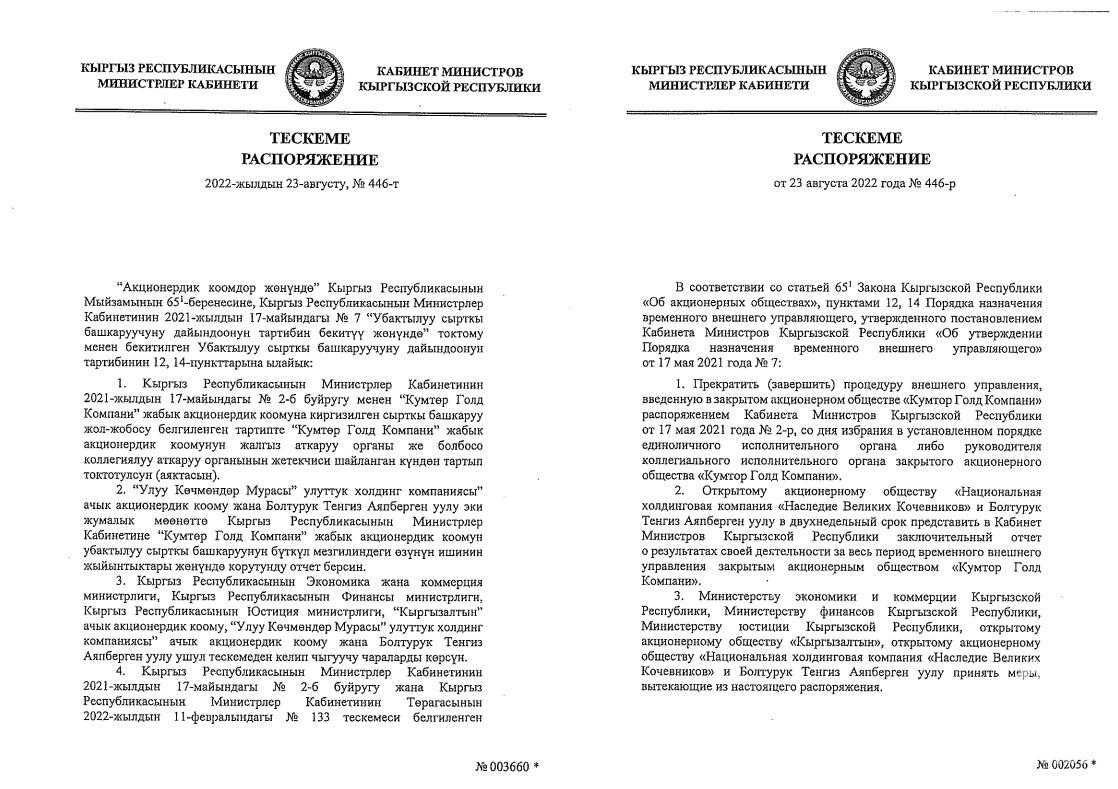 Напомним, что внешнее управление на Кумторе введено 17 мая 2021 года.