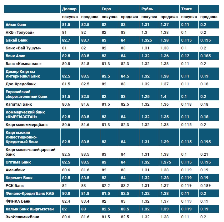 Курс доллара в коммерческих банках Кыргызстана на 2 сентября
