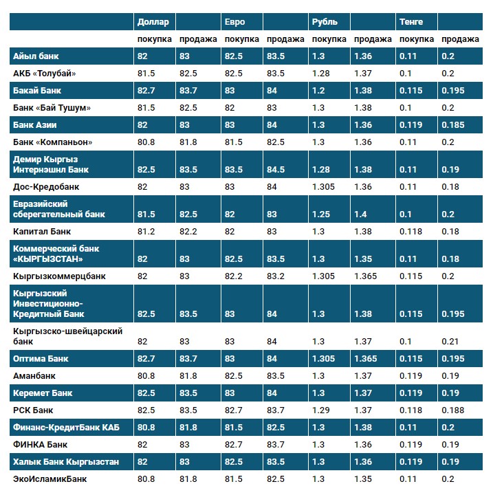 Курс доллара в коммерческих банках Кыргызстана на 6 сентября