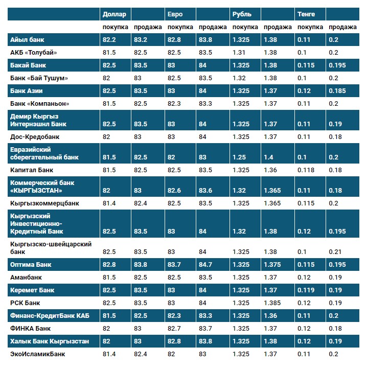 Курс доллара в коммерческих банках Кыргызстана на 10 сентября