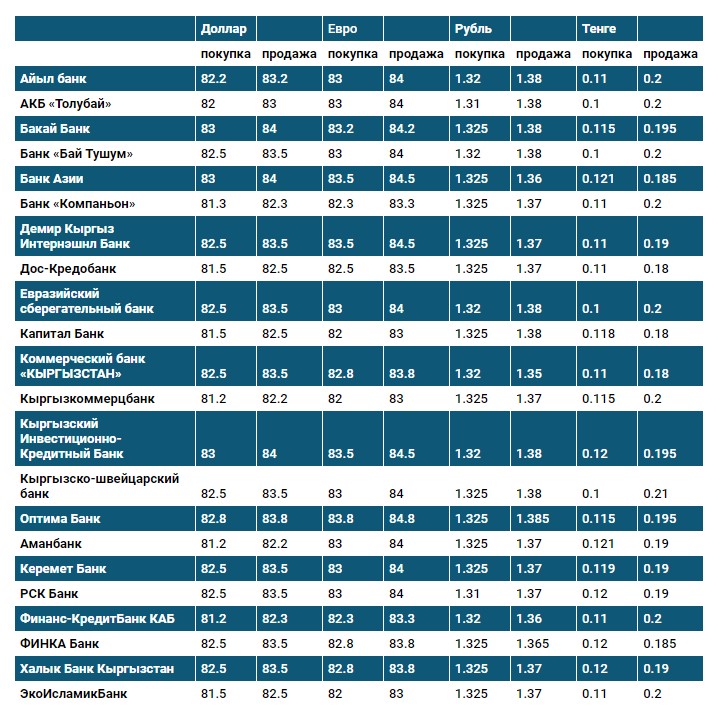 Курс доллара в коммерческих банках Кыргызстана на 12 сентября