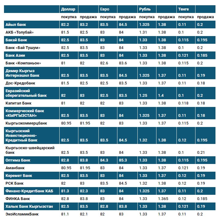 Курс доллара в коммерческих банках Кыргызстана на 13 сентября