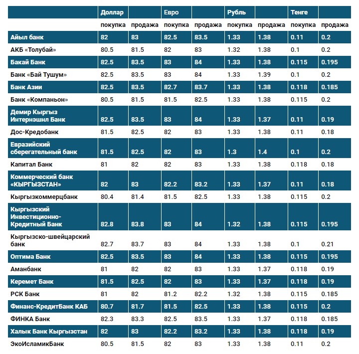 Курс доллара в коммерческих банках Кыргызстана на 20 сентября