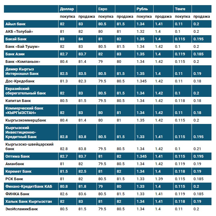 Курс доллара в коммерческих банках Кыргызстана на 27 сентября