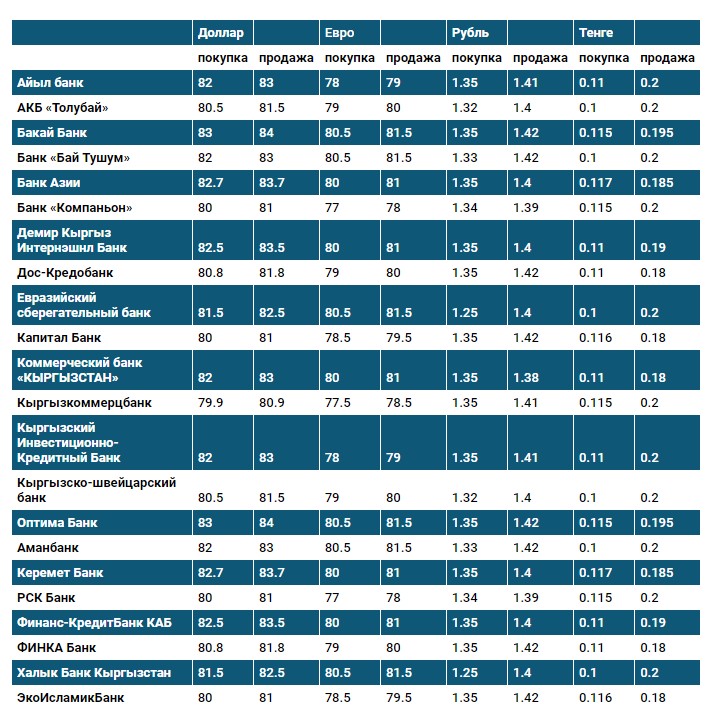 Курс доллара в коммерческих банках Кыргызстана на 28 сентября
