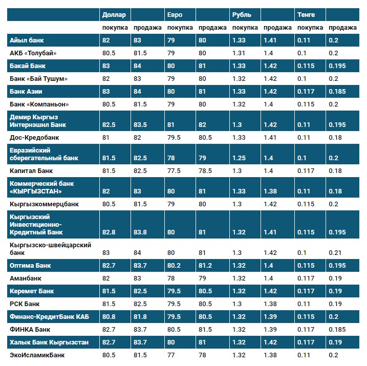 Курс доллара в коммерческих банках Кыргызстана на 30 сентября