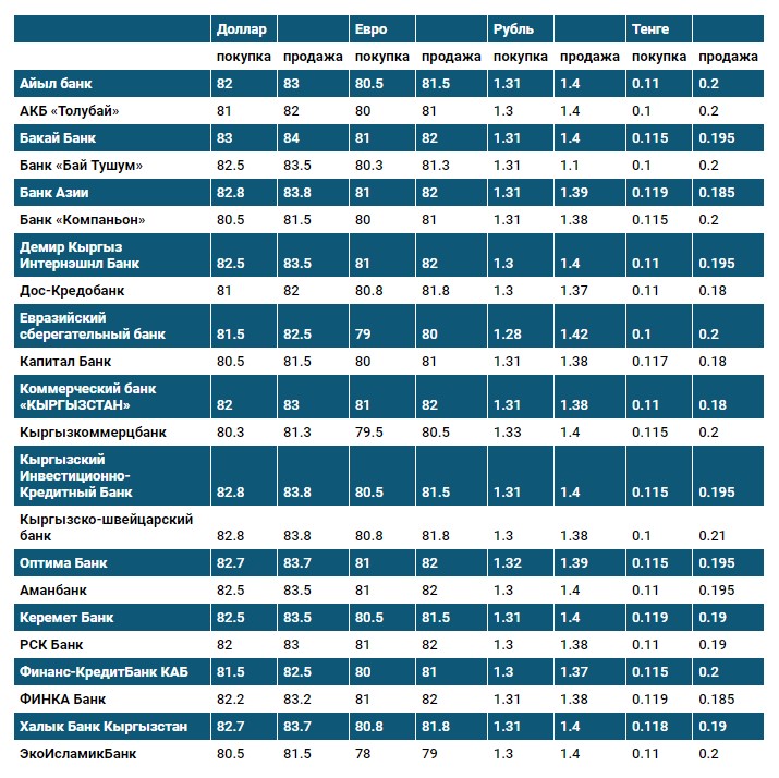 Курс доллара в коммерческих банках Кыргызстана на 6 октября