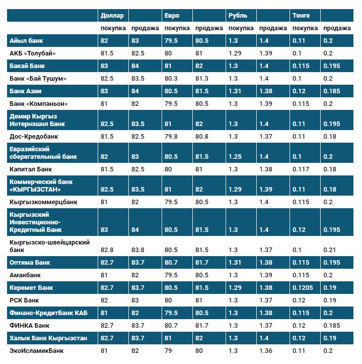 Курс доллара в коммерческих банках Кыргызстана на 10 октября