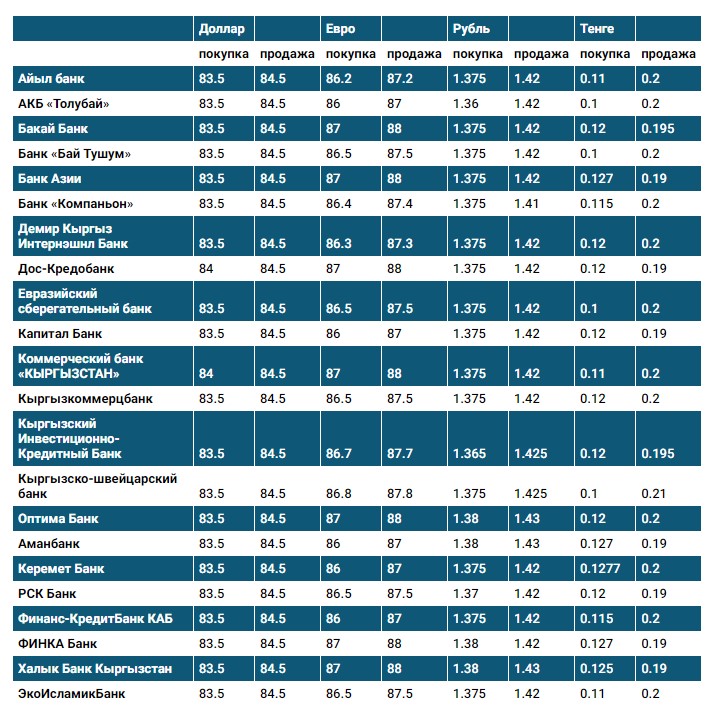 Курс доллара в коммерческих банках Кыргызстана на 14 ноября