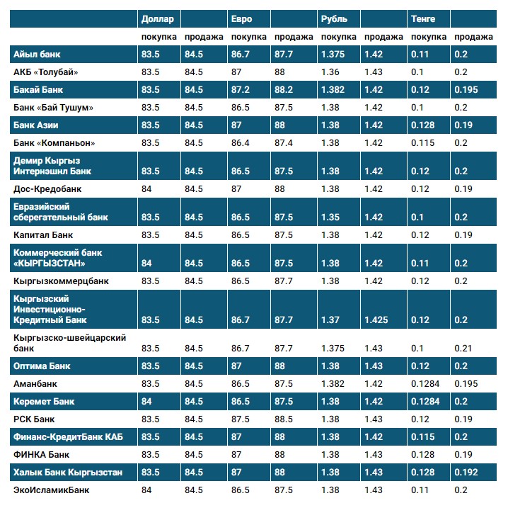 Курс доллара в коммерческих банках Кыргызстана на 15 ноября
