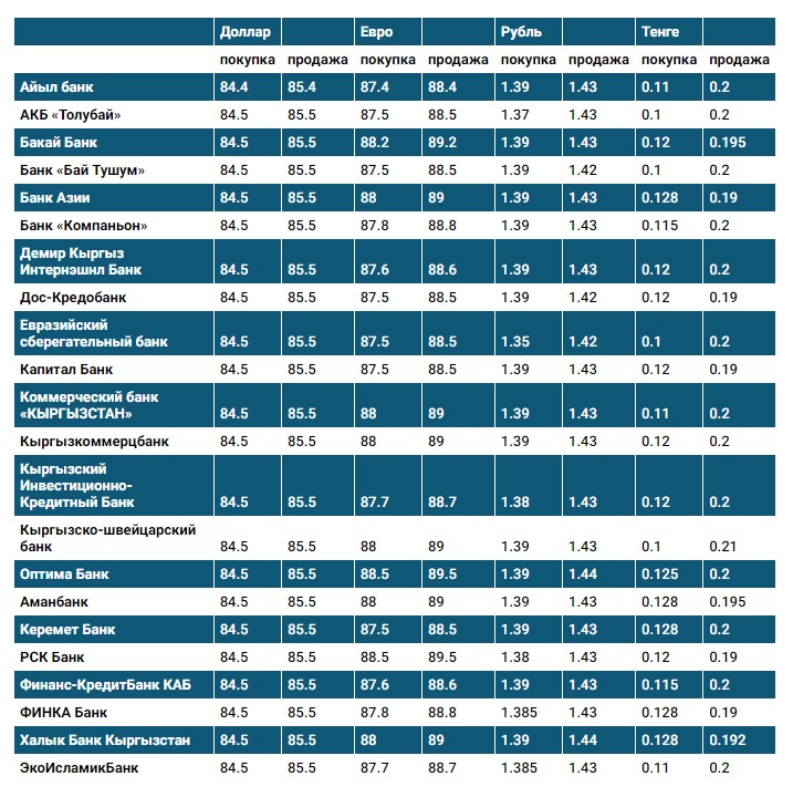 Курс доллара в коммерческих банках Кыргызстана на 17 ноября