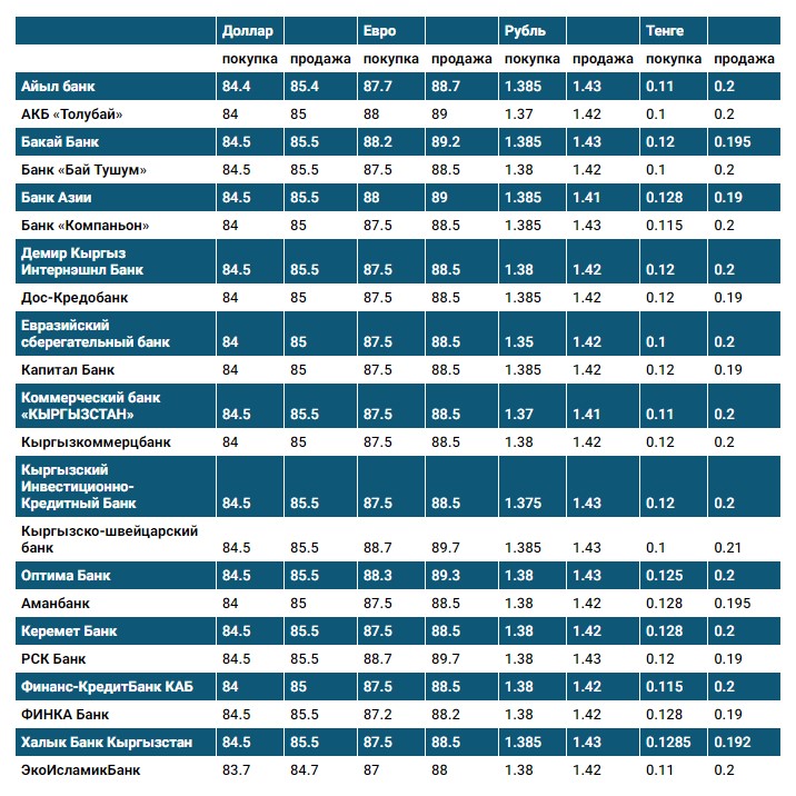 Курс доллара в коммерческих банках Кыргызстана на 18 ноября