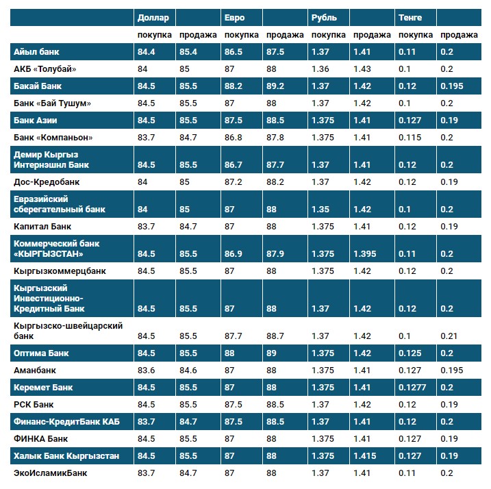 Курс доллара в коммерческих банках Кыргызстана на 23 ноября
