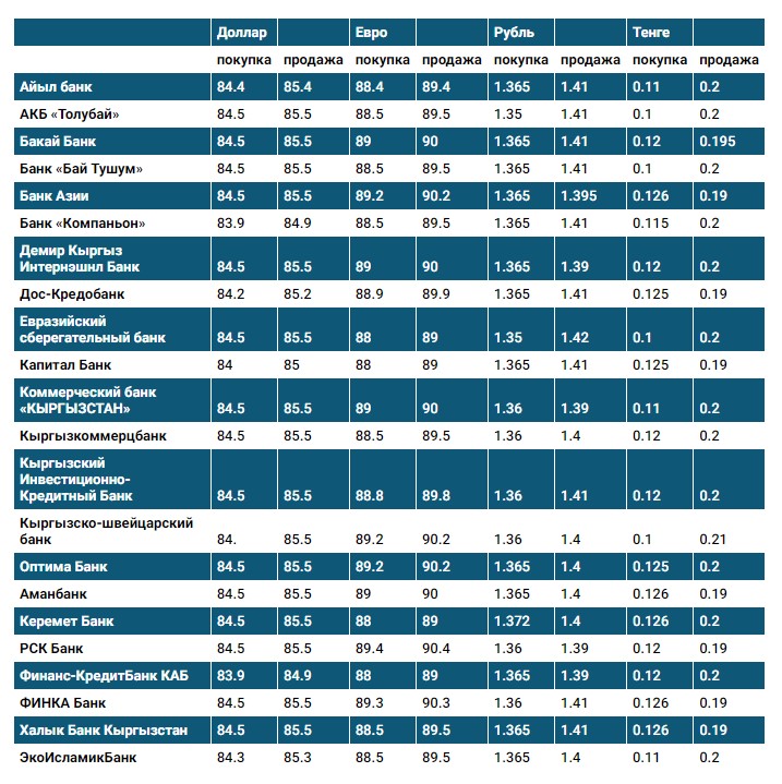 Курс доллара в коммерческих банках Кыргызстана на 2 декабря
