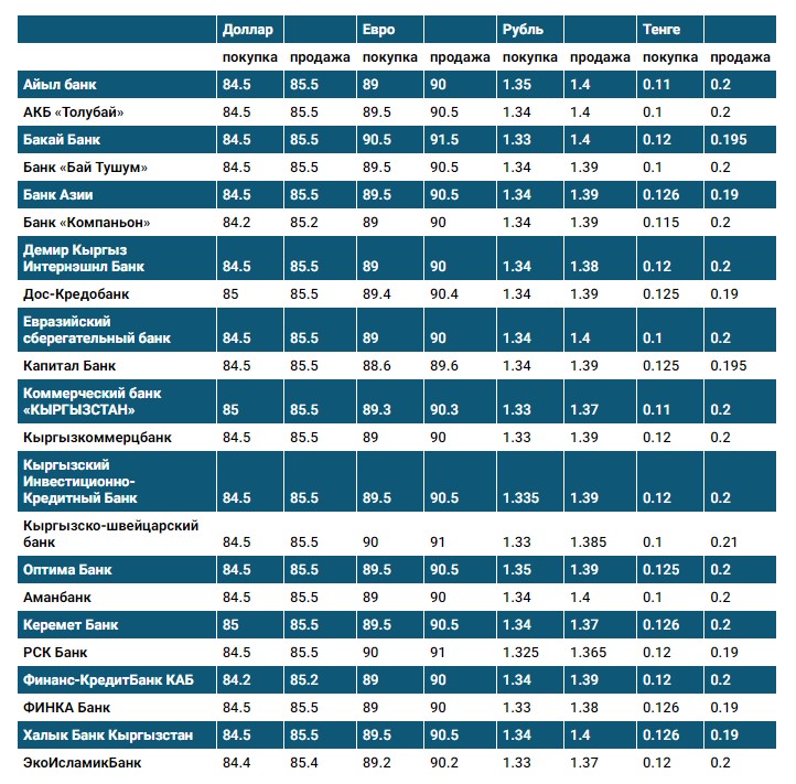Курс доллара в коммерческих банках Кыргызстана на 6 декабря