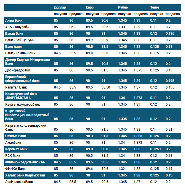Курс доллара в коммерческих банках Кыргызстана на 9 декабря