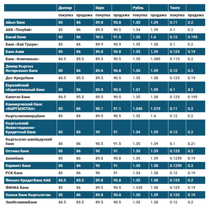 Курс доллара в коммерческих банках Кыргызстана на 12 декабря