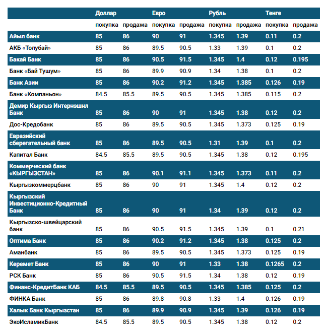 Курс доллара в коммерческих банках Кыргызстана на 13 декабря