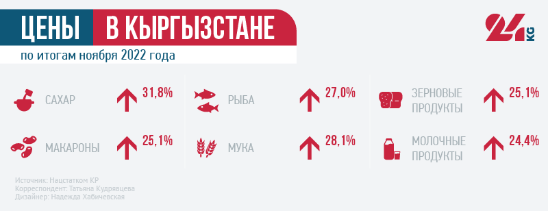 Повышение потребительских цен и тарифов в ноябре 2022 года отмечалось во всех регионах республики. Максимальный рост цен в городе Оше — 1,9 процента.