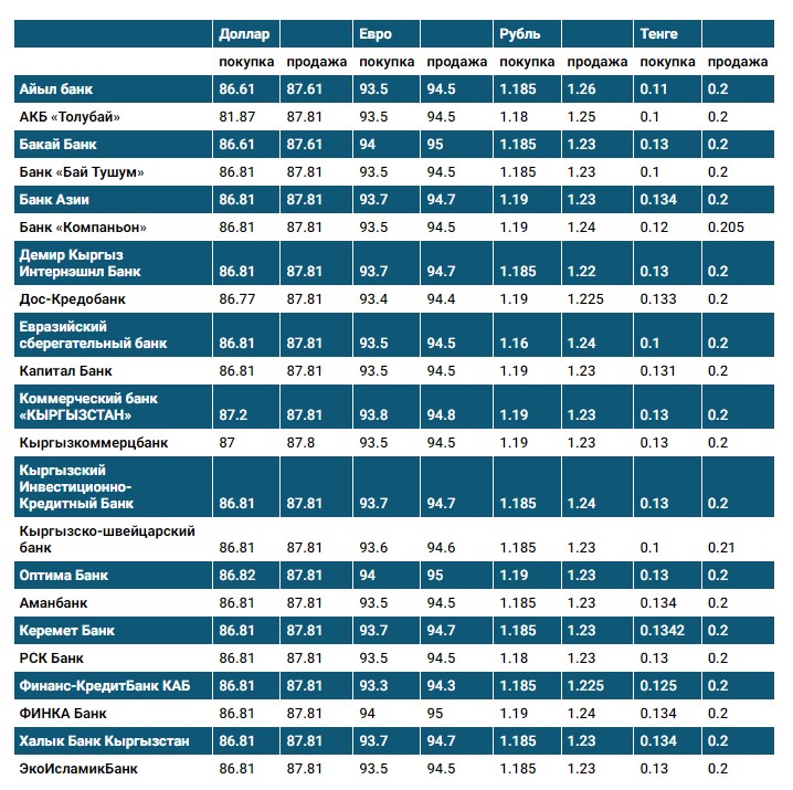Курс доллара в коммерческих банках Кыргызстана на 10 февраля