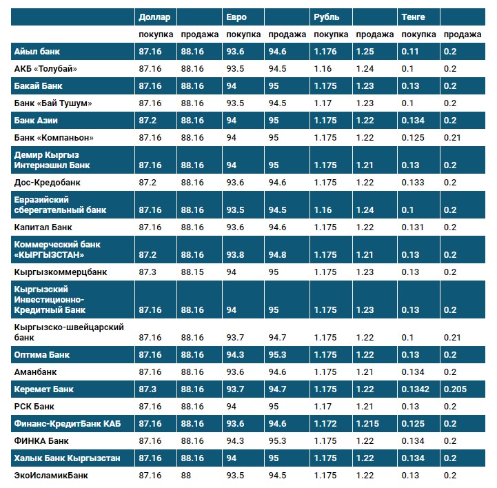 Курс доллара в коммерческих банках Кыргызстана на 14 февраля