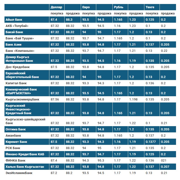 Курс доллара в коммерческих банках Кыргызстана на 20 февраля