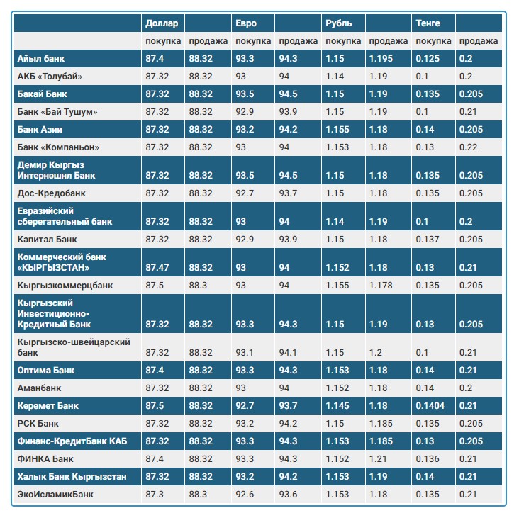 Курс доллара в коммерческих банках Кыргызстана на 3 марта